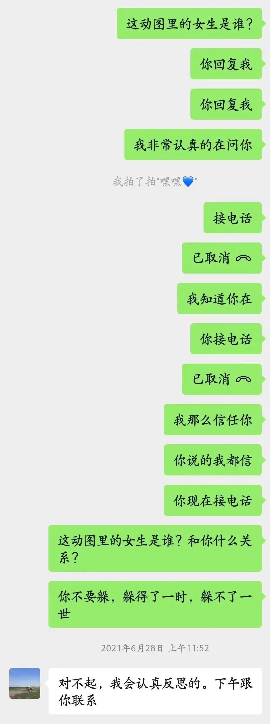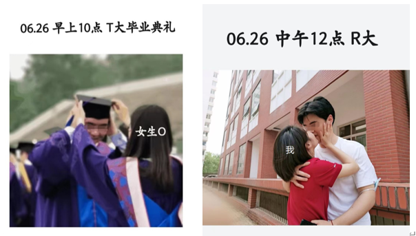 女主虽然在人大,但是清华的同学也不少,很快就发现了男主在毕业典礼上不对劲的举动。被发现之后,渣男本来还撒谎是前女友,但很快就装死不回答了。
