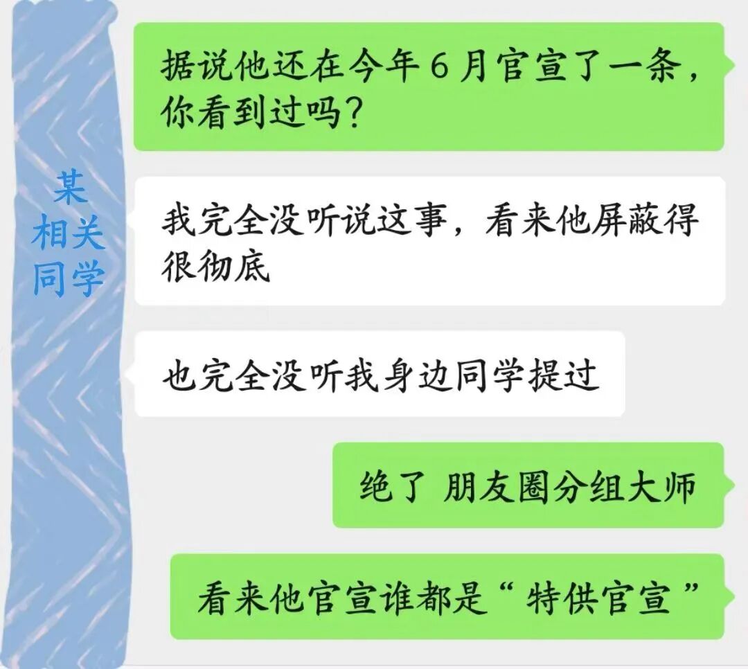 短短6个小时之内,下午3点拿蝴蝶酥、4点跟女主喝咖啡,晚上和清华女友吃饭,然后10点朋友圈分组秀恩爱,真的是时间管理大师。