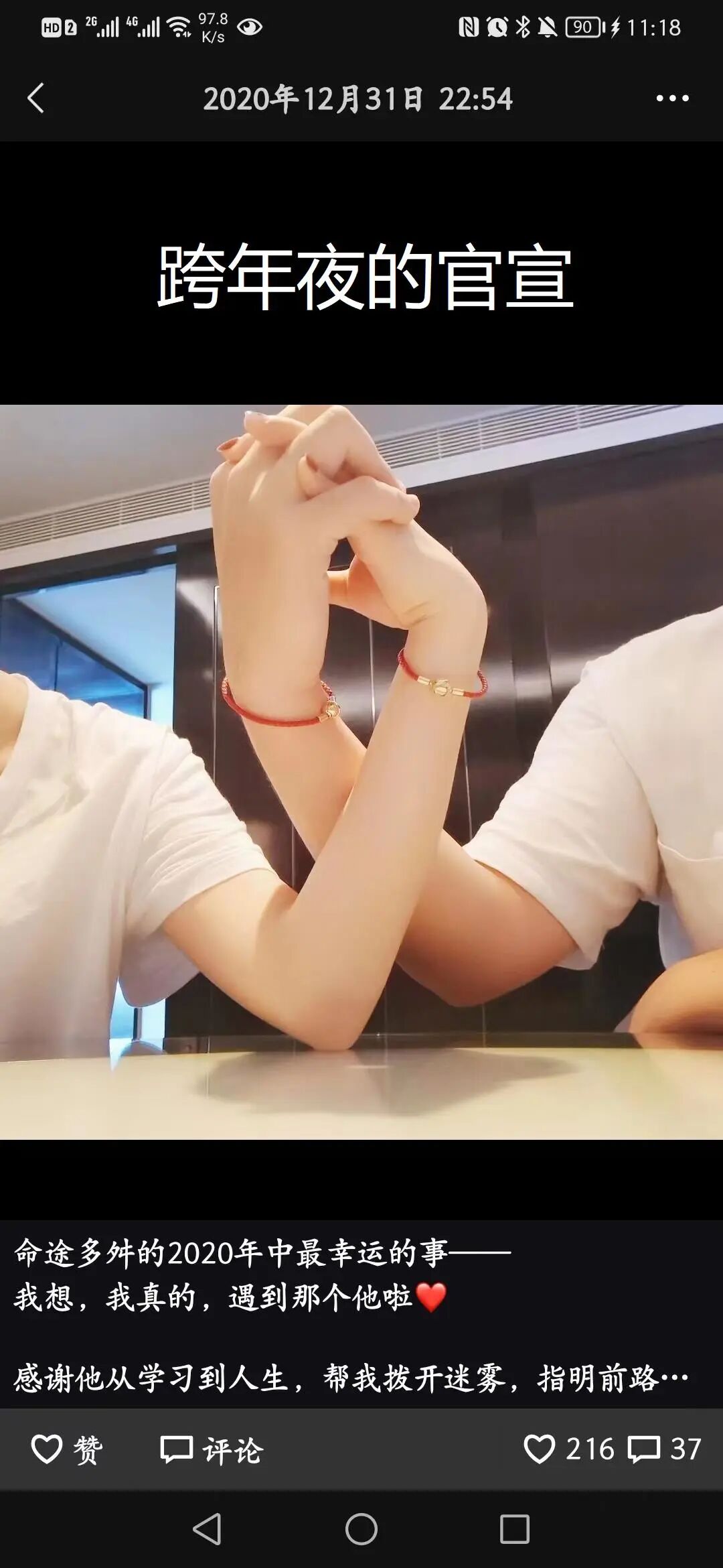 2020年的跨年夜,女主终于等来了期待已久的朋友圈官宣,男主也坦白了之前的经历,说有个“前女友”是同班同学。