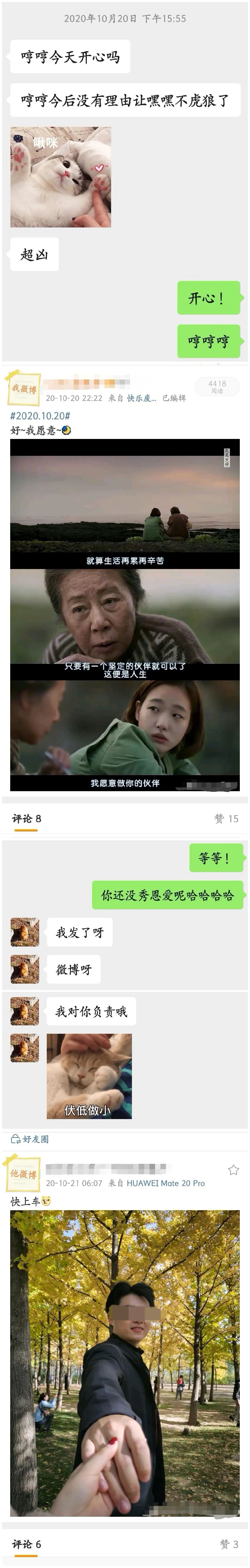 2020年10月20日,男主正式对女主表白。成功之后,却借口自己是大院子弟要低调,只能在微博官宣,朋友圈还不是时候,善良的女主就这么傻乎乎的相信了。