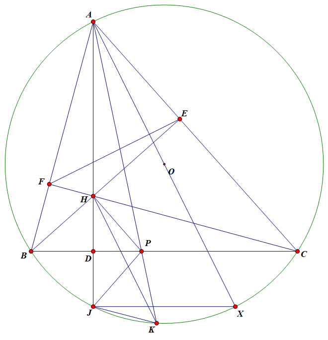 注意到PH=PJ, 即(HJK)外心在BC上;