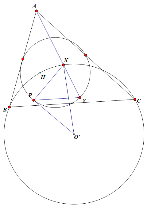 分析: 额..怎么说呢, 这道题乍一看奇奇怪怪的, 这个跟谁也不挨着, 的构造也很奇怪, 条件中也就 九点圆 和 (BHC) 还友善一点, 不难发现两圆关于点位似, 看看能不能从这个点入手;