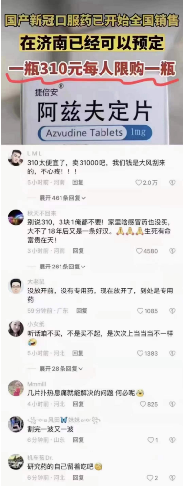 现在,又推荐什么新guan口服药了,一瓶310元,还每人限购一瓶,这是故意造成货物短缺的假象吗?
