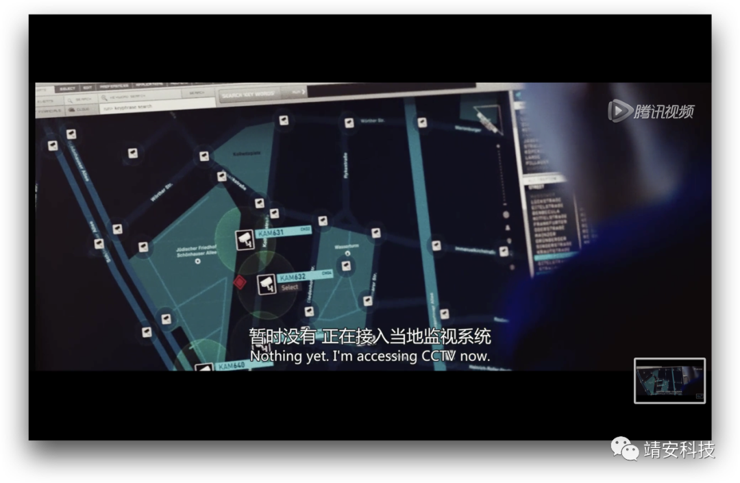 回到CIA指挥中心,为什么说此刻指挥大屏上右边第一区域是历史视频跨镜追踪呢?画面中可以看到,都是伯恩在柏林出现的各个镜头下的截图,首先这块区域肯定不是实时视频,其次,有的画面是伯恩的侧影、背影以及高角度的俯拍,并不包含人脸,所以肯定不是人脸卡口拍到的图片。第三,事件预警后,现场第一视角监控发现目标嫌疑人,对于指挥中心来讲,也很关心目标是什么时候出现的,从什么轨迹到达的现场。
