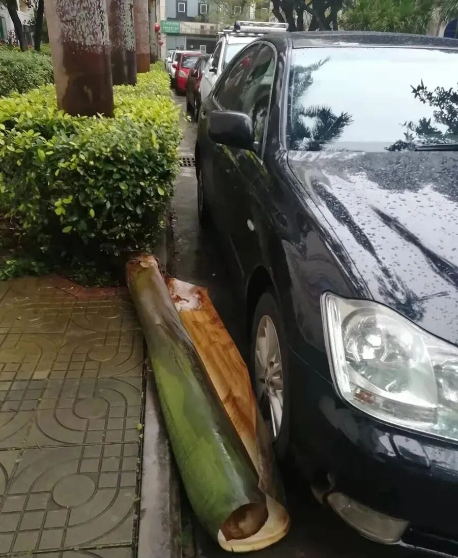 今年2月,海口现代花园小区就有棕榈叶片砸坏业主汽车的报道。为了防止棕榈砸人,海口一些小区直接把棕榈“剃了光头”。