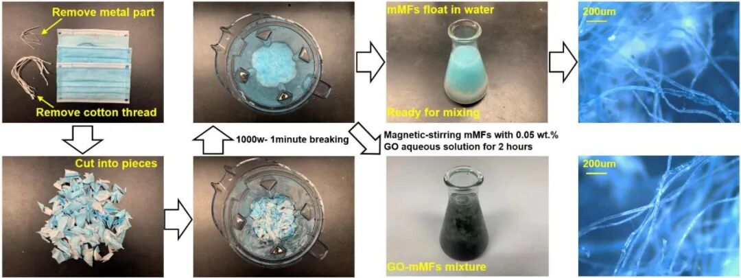 研究人员将口罩上的耳挂和金属丝去掉,将其他的织物部分切碎成长度从5~30毫米不等的纤维,再加上氧化石墨烯溶液。最后,经过一系列处理的“口罩浆”和普通水泥拌在了一起,科学家将探究7天和28天后的“口罩水泥”效果。
