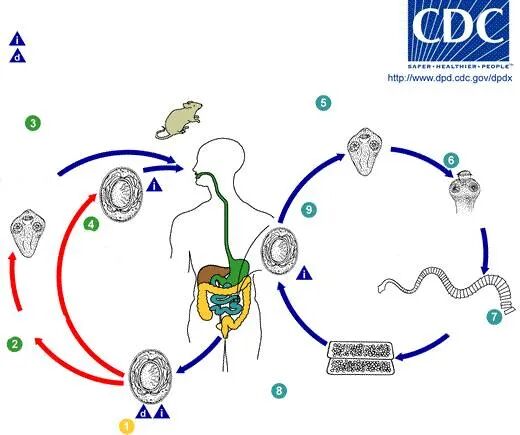 微小膜壳绦虫和其他绦虫不太一样,它不需要中间宿主就可以在人的小肠里经历整个虫生。