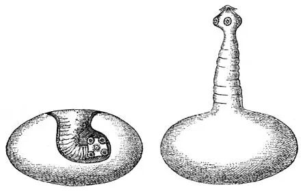这还不是最刺激的。它们的头原本是缩在身体里的,但是接触到肠子以后就会biu地弹出来。当时的情况大概是这个样子——