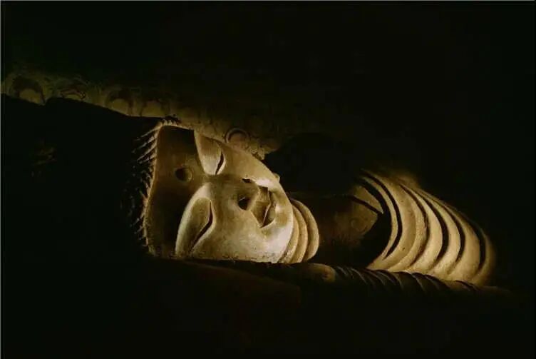 莫高窟第158窟 西壁 佛坛唐代释迦涅槃像局部(吴健 摄)