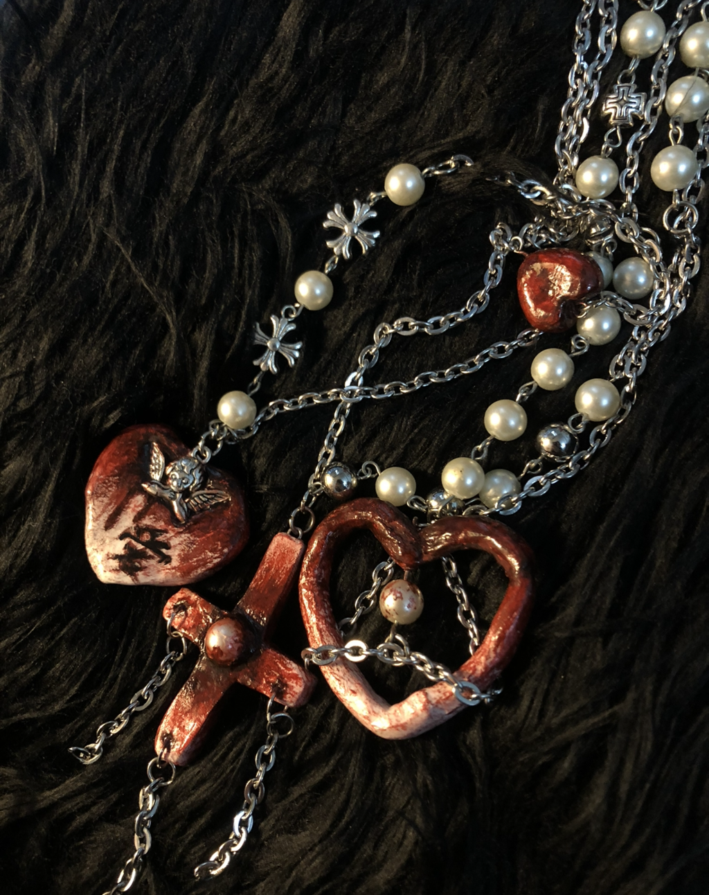 手作的一些粘土,金属项链、毛茸茸发夹