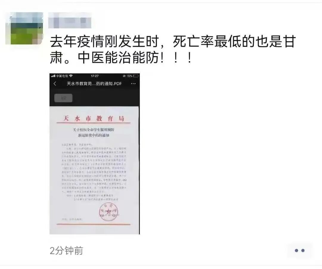 甘肃省天水市教育局,在全国率先组织全市学生服用中药防疫。