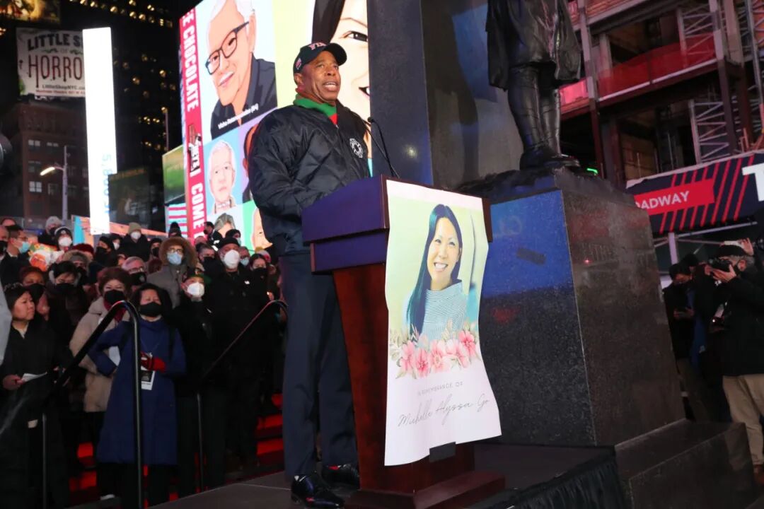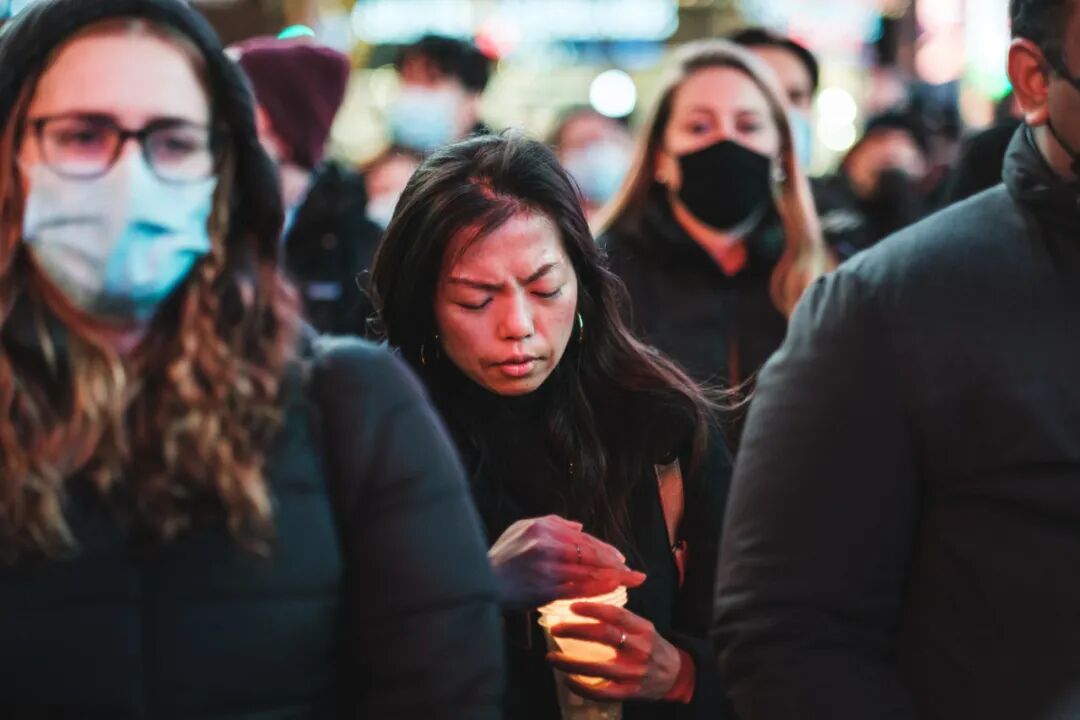 来自皇后区伍德赛德(Woodside)的40岁的杰·麦奎尔(Jae McGuire)称高慧民的死亡是一起“毫无缘由的暴力事件”。麦奎尔说:“她甚至没有看到攻击她的人。她就像我一样站在那里等火车,这是我每天都在做的。”活动现场的一些发言者谴责了纽约市的反亚裔暴力事件。这起可怕的事件并没有被纽约警方认定为仇恨犯罪,但本地亚裔社区注意到,自2020年新冠大流行病出现以来,针对亚裔的攻击事件在整体上有显著增加。高慧民也是亚裔。守夜活动在“世界十字路口”的红色台阶上举行,由“亚裔抗击不公正”(Asians Fighting Injustice)组织发起,此时是高慧民在时报广场站被推到R线列车前杀害仅三天后。“亚裔抗击不公正”组织的创始人本·魏说,该组织要求市政厅成立一个亚裔美国人特别工作组,以解决对反亚裔暴力的持续担忧。![]()