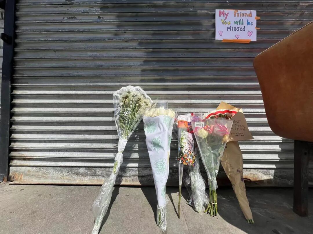 纽约华人资讯网记者周日下午走访了严志文工作的长城餐馆,发现餐馆已经关闭,店门口摆放着人们留下的鲜花和悼念卡片。