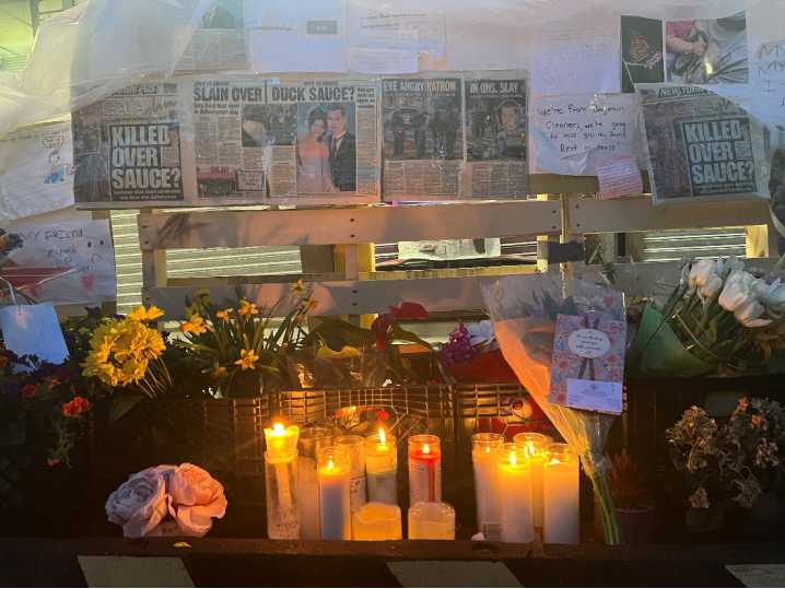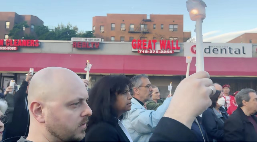 福建人严志文在送外卖途中被枪杀于纽约市街头的第十一天后,皇后区森林小丘的社区人士为他举行了一场烛光追思会。5月11日晚7点,在严志文曾经打工的长城餐厅门口,上百名居民手捧蜡烛静默哀思,并纷纷在社区小学生们为外卖郎画的四幅画上写下安慰、鼓励受害者家属的话。