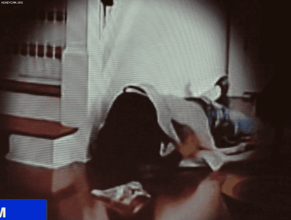 监控视频截图:嫌疑人头披床单,推动一个黑色设备,在地上爬行。
