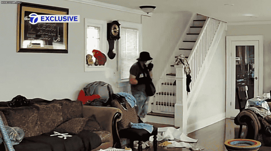 嫌疑人开始通过厨房走出房子,但就在这时,Wi-Fi重新连接,一个巨大的警报声响起。随后可以看到该男子从他闯入的侧窗窜了出去。