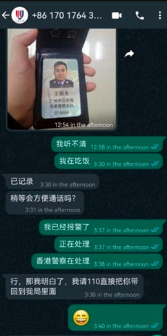 所谓关心则乱,正是因为我一心害怕接下来的行程受到影响,急火攻心,才在恐惧和怀疑的情绪中,逐渐让恐惧占据了上风,失去了判断力。现在回想起来,破绽还是有迹可循的,比如“主任”毫无口音的普通话,以及居然可以在几秒之内把电话转接至内地公安,无缝衔接;“刑警”在跟我通话的过程中让我关掉外放,并质疑我在回答他提问的时候分心(当时确实有微信好友发信息过来),他还让我确保附近没有其他人、保持安静,也不要使用微信等会“泄漏个人信息”的通讯工具——孤立我,断掉我跟别人交流的机会,我就会越陷越深。