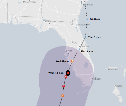天气预报员警告说,未来几小时,该州西南海岸将出现“极其危险”的降雨和大风,并向内陆地区延伸数小时,坦帕(Tampa)和圣彼得堡(St. Petersburg)可能会受到自1921年以来的首次大飓风的直接袭击。