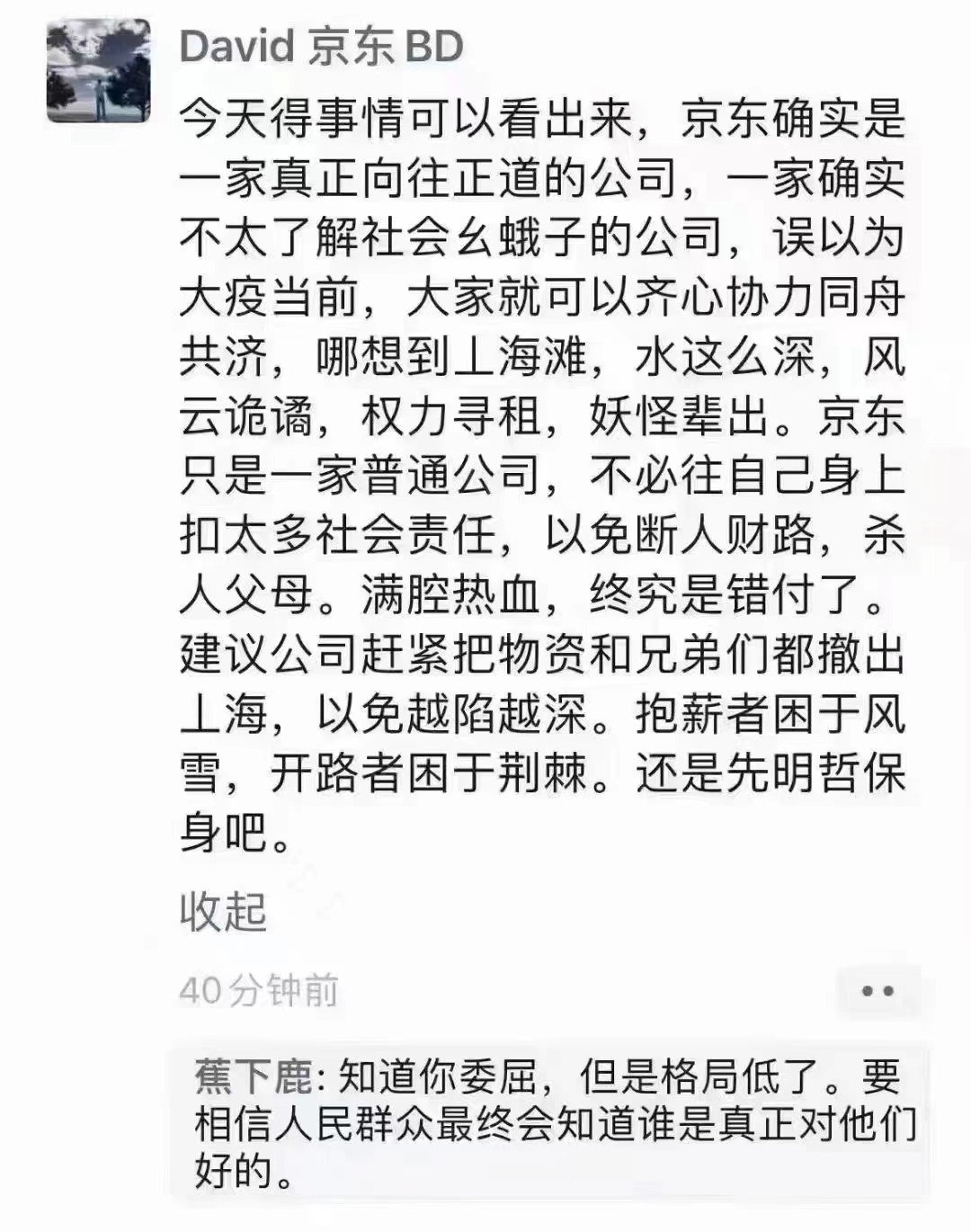 再看看,物资运不进来,京东都无奈了。因为这是断人财路。