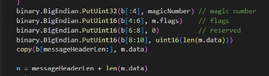 ICMP隧道传输的数据,由两部分构成:MessageHeader和QUIC数据。MessageHeader的长度固定10个字节,前四个字节存放magicNumber,默认为固定字符串“GOST”,最后两字节存放后续载荷的长度。
