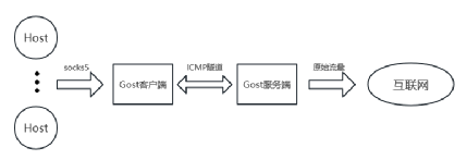 隧道的搭建需要客户端和服务端两端,客户端负责接收socks5代理协议,解析后将数据封装成ICMP协议发送到服务端,服务端接收后解析成原始流量并转发。
