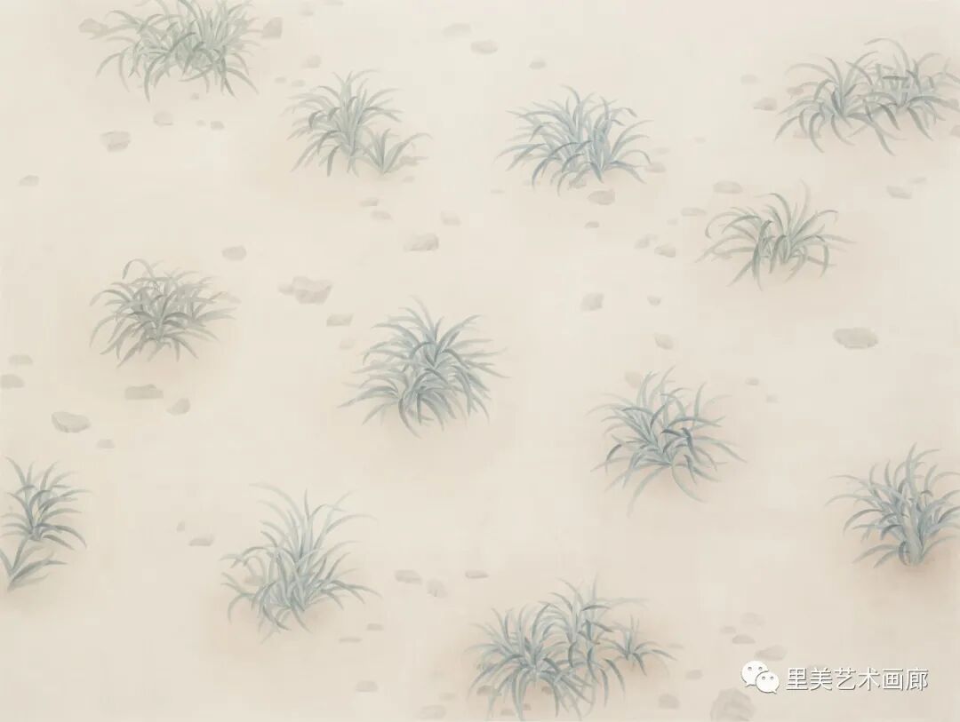 除了对常见传统题材,如对天空和云的庄严描摹,周隽的画更是对微小事物的致敬,诸如草叶,草地(在我们的时代以难以如此自然的形式看到)。在这个高速运转的时代,这些事物来来去去几乎不被留意,她用纸和温柔的笔触,颜色不含任何论断的给予我们抚慰,如同微小事物做一个田园牧歌式的友善之举。
