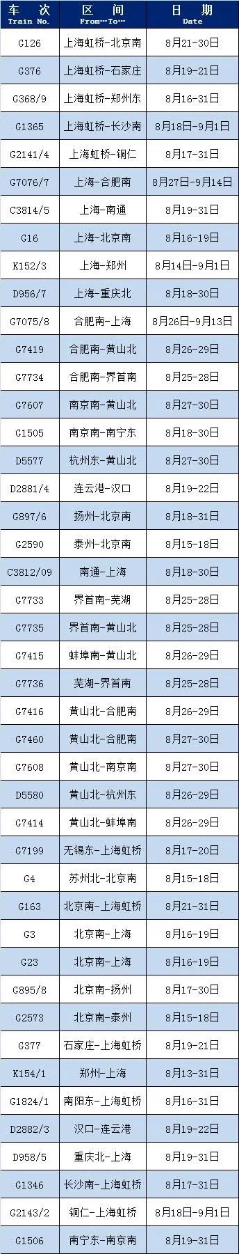 为满足旅客出行需求,长三角铁路8月17日发布通告,恢复开行、增开部分列车,具体如下: