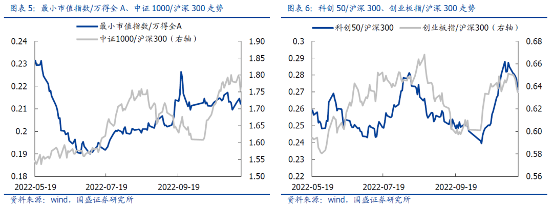 风格相对表现来看,超小市值、小市值、创业板、科创板相对市场表现均较弱。本周超小市值/万得全A、中证1000/沪深300、科创50/沪深300、创业板指/沪深300表现分别为-0.01%、-1.39%、-3.92%和-2.35%。
