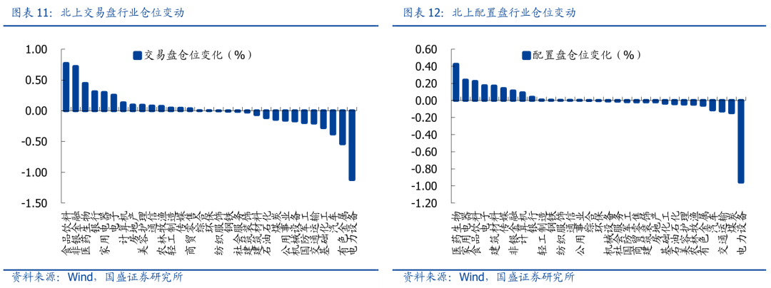 交易盘:食品饮料、非银金融和医药生物仓位提升居前,分别环比提升0.77%、0.72%和0.44%,而电力设备、有色金属和汽车仓位回落居多,分别环比降低1.12%、0.54%和0.38%。