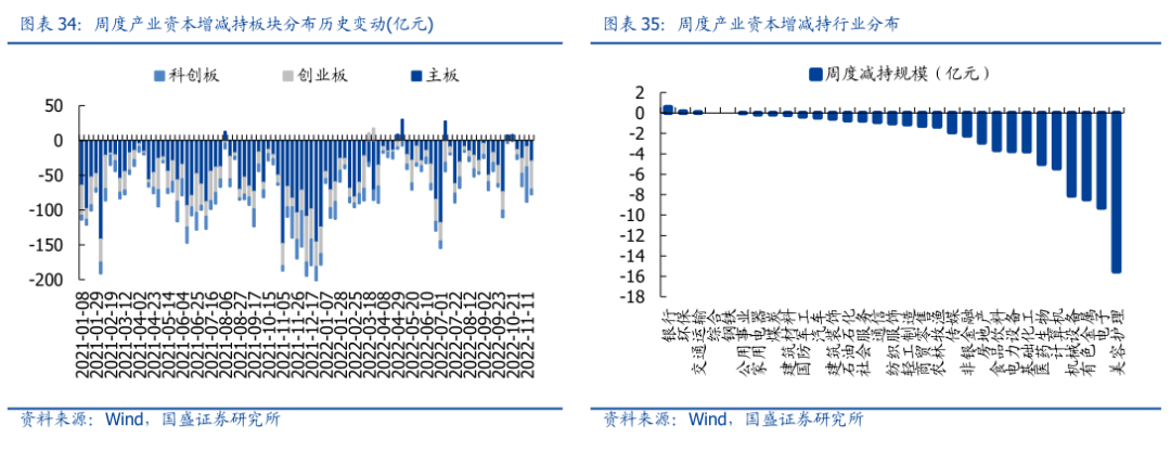 2022年11月18日当周,周内累计减持约77.93亿元,其中主板减持29.86亿元、创业板减持40.25亿元、科创板减持7.82亿元。行业层面,银行获增持居多,约0.58亿元,而美容护理获减持居前,约15.52亿元。