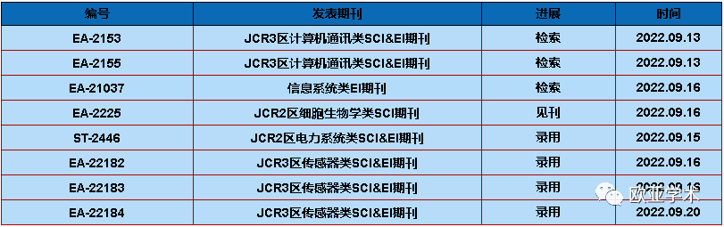 2022年9月第三周,我处EA-ISET协会推荐发表的文章目前都在有序进行中。
