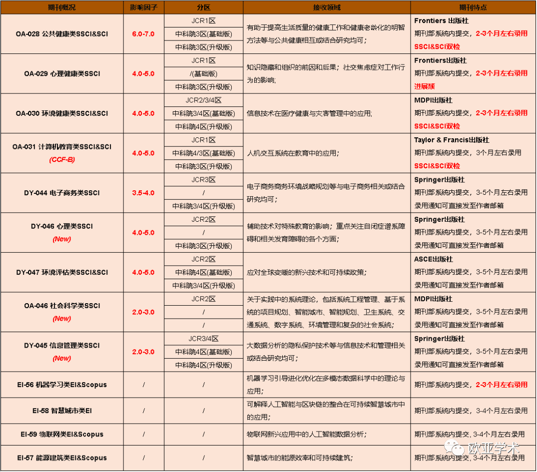 进入11月,我处EA-ISET协会重点SCI/SSCI/EI源刊已更新,现火热征稿中!新增17本SCI/SSCI/EI期刊(含TOP/CCF),其中新增: