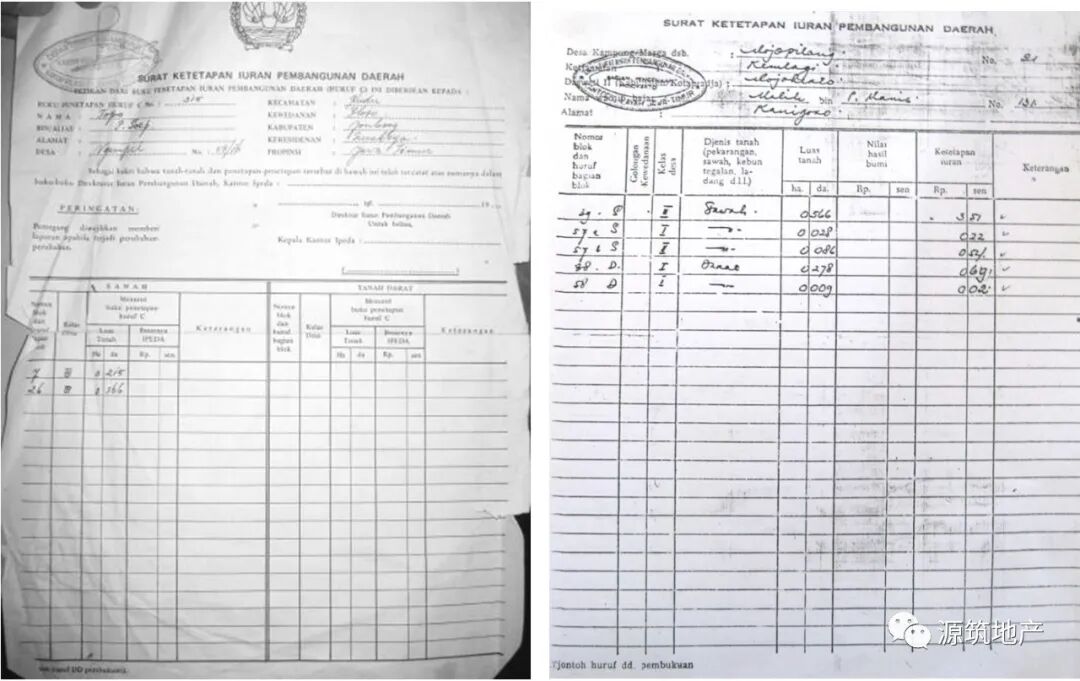 印尼在很长一段时间被荷兰政府统治, 因此在那个时间产生了很多荷兰政府规定的财产文件。即使印尼的土地法已于建国时重新定义, 但由于政府对财产权的监管不力以及偏远地区信息不普及等原因, 印尼至今仍有很多传统的土地证书。