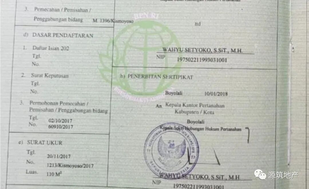 Girik 土地证书在印尼自古以来就存在,是印尼最传统的一种土地授权书,一般常见于世袭持有。在 Girik 证书中,应有土地数量、面积和通过继承或买卖获得的土地编号和所有者。但目前此证书的权力仅用于税收目的, 不能作为土地所有权的证明。因此在买卖交易持有 girik 的土地时, 必须有其他证据支持所有权,即买卖契约(AJB) 或继承文件。并在购买完成后尽快去国家土地管理局办理所有权证书 (SHM), 以获得完善的法律保护。