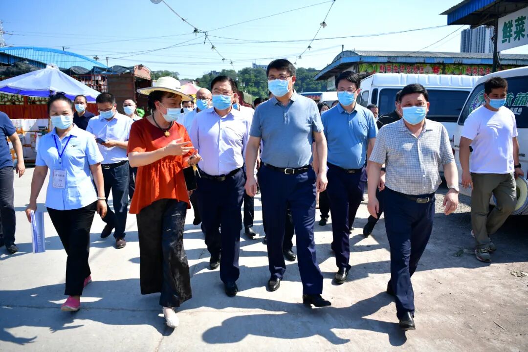 7月26日,市商务委党组书记、主任章勇武,区委书记李春奎一同前往重庆花枝农业蔬菜批发市场,调研疫情防控和保供工作。自7月21日,江津区双福国际农贸城和长寿区三科农产品批发市场陆续因疫情暂停营业以来,位于我区毛线沟杨渡村的重庆花枝农业蔬菜批发市场全力承接果蔬交易功能转移,确保果蔬供应充足、价格稳定。调研中,章勇武、李春奎实地检查市场出入口、蔬菜交易区、市外交易专区等区域疫情防控措施落实情况,详细了解了市场进货供应、价格变化、人员管理等情况,强调要把疫情防控工作抓严、抓实、抓细,严格做好重点区域卫生消杀、从业人员核酸检测、进出人员佩戴口罩和测温验码等工作;有关部门要严把疫情防控输入关、入门关、交易关、检验关,加强检查指导,密切关注供需变化,督促市场经营户安全经营、诚信经营,让老百姓吃上放心菜、平价菜。目前,重庆花枝农业蔬菜批发市场采取提级入场预约申报制,由提前3天申报,提级到提前1天预约,严格核查渝康码、行程码和24小时核酸证明,严禁中高风险区来车进入市场交易;通过线上线下核查,严格执行落地抗原和核酸检测,努力拒风险于场外;市外市内分区交易,原则上做到在车卸货,减少交易过程社会接触面;分类设置核酸检测点,结合行业习惯、市场规律,合理安排开放时间。同时,强化监测运行,通过每日研判市场保供形势,每日监测重点蔬菜价格,开通价格监督举报,切实维护市场良好交易秩序。市商务委副主任彭和良,区领导程彪、邢雅翕、周韬参加调研。我区与重咨集团座谈交流