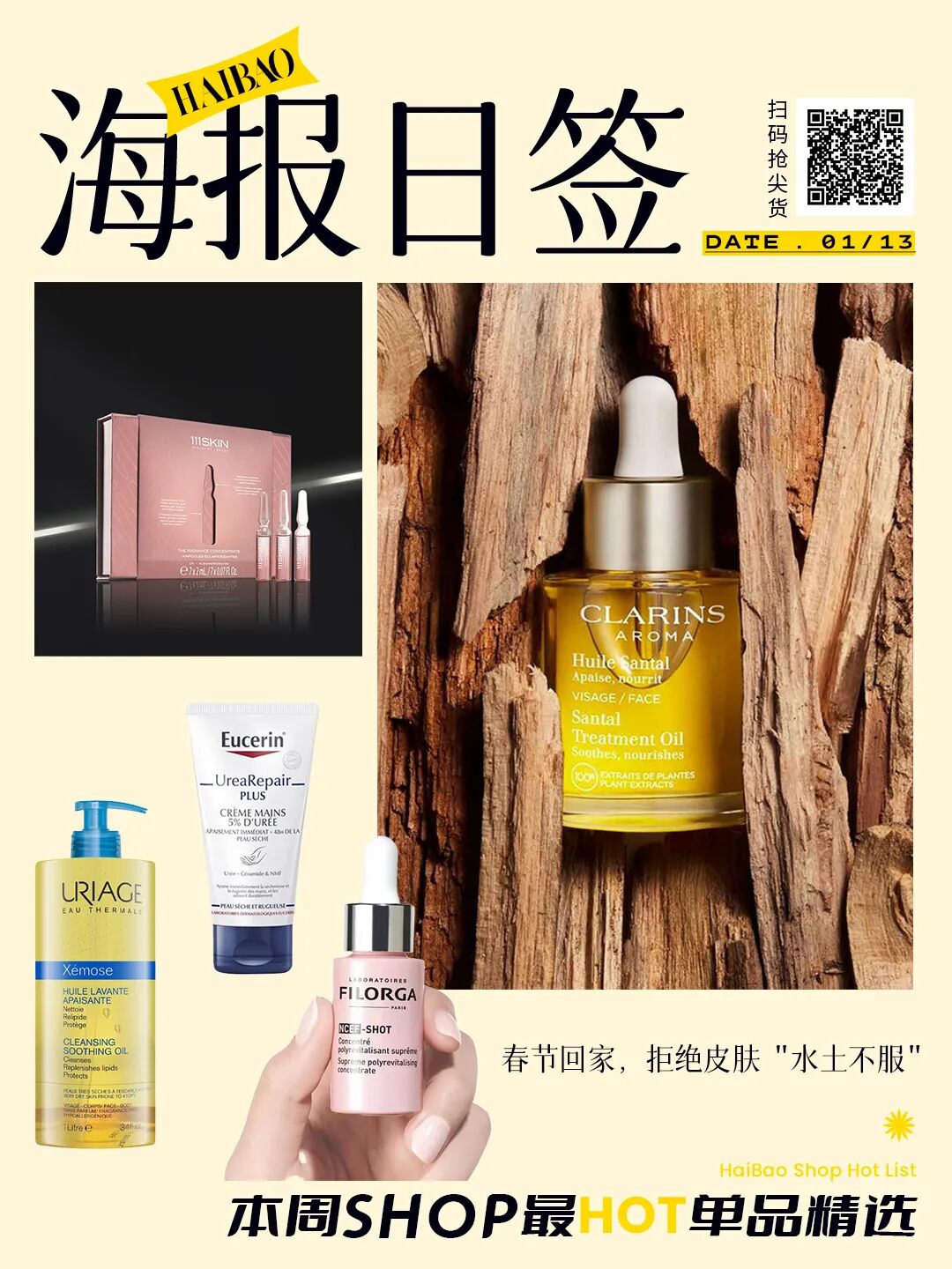 贝德玛洗护二合一的沐浴油也是大家的老朋友了,如果你会跑到三亚那块,用它洗完澡都不用抹身体乳。🙄️跟一般的沐浴产品不同,这款沐浴油属于水溶性油脂,不是靠着强清洁剂成分洗干净,而是靠着油来溶解死皮、垃圾,让你的皮肤越洗越软,越洗越亮(有种以柔克刚的感觉)。而且哦~水溶性油脂遇水即刻“变脸”,变成软乎乎的泡沫附在身体上,不仅有好的使用感,冲水也更容易冲净。最重要的,它是洗护二合一的产品,里面添加了很多修护屏障和持久保湿的成分(比如:维他命B5衍生物),清洁干净还不够,还能在肌肤表面形成锁水膜,摸起来软软滑滑的,洗完澡不抹身体乳也不会干燥。护手霜一年四季少不了欧舒丹的身影,欧舒丹护手霜就是属于用完它就知道其它都是将就。保税|L‘OCCITANE 欧舒丹护手霜樱花玫瑰马鞭草芍药多种香味 多种规格75ml别的护手霜抹完:哇,我的手好润!欧舒丹护手霜抹完:哇,我的手好嫩!每款护手霜里面都添加了大量的乳木果油成分,深层滋养并且在肌肤表面形成隐形的油脂来保护双手安稳面对寒风,而且在深层滋养的时候也有修复的作用,像是手上的红血丝、干纹...全都能一抹而净,甭管摸起来还是看起来都像是重生了似的。最值得一提它的使用感,油分、水分能明显感觉到营养被吸收掉了,不是在磨磨蹭蹭之中浪费掉了!抹完后感觉到手微微有些湿润,在清爽感和油腻感中间中和的很好。回忆一下之前用过的护手霜,要不就是油浮在手面,黏到粘灰的那种~要不就是水水的,抹来抹去硬是吸收不掉~欧舒丹完全将这些错误❌答案避开!而且每款味道非常高级,相比于工业香精的刺鼻,闻起来反倒还有点治愈的感觉哈哈哈~如果去到的地方空气越来越湿时:湿气影响角质蛋白里的二硫键,使得发丝的韧性和强度受损,所以这个时候的护发不仅需要追求蓬松,还需要护发产品具有高渗透的功效。当越来越空气越来越干时:补水、锁水为主,减少静电,保持顺溜。sudtana的洗发油则一直将此作为自家的护理目标。sudtana佛手柑椰子修复滋养预洗发油120ml这款洗发油就比较适合在比较干燥的环境使用,通过佛手柑油、椰子油、芝麻籽油...这种比较天然的油性成分抚平毛躁,而且更容易被发丝所吸收(更容易渗透进发芯)。它的使用方法很简单,洗头发之前先把预洗发油抹在头发上“敷”个15—20分钟左右,然后直接用清水或者洗发水洗掉就成。编辑犯懒的时候也不再抹护发素、发膜啥的,用洗发油一个就能解决洗护步骤...说实话,虽说流程上犯懒,效果一点也没打折扣。每次吹干的时候抹自己的头发,像是刚从护理店焗油过似的,软软滑滑的,屋里的灯光一照,都反光!如果你想要蓬松效果,那就可以试试Olaplex奥拿匹斯这套“老网红”组合——4号洗发水+5号护发素。Olaplex/奥拿匹斯4号洗发水 250ml/5号护发素 250ml不知道大家有没有这种感觉:有些洗发水用完之后确实会让头发很蓬松,但是却让头发显得异常“毛糙”,甚至有种熬夜之后的精疲力尽感,能支撑,但也“虚”的不行。Olaplex4号洗发水+5号护发素则是为了解决发丝内部损耗的问题,它里面有个能一键还原好发质的“黑科技”——重塑受损二硫键。简单来讲就是调整发丝的内部结构,减少虚耗。除此之外还能够将高渗透(荷荷巴油)和复配的高营养(芦荟、柠檬酸)成分“引入”到发芯,让头发丝有足够的“体力”养出亮·滑的发质。大家还记不记得《请回答1988》里面有句话,叫“子女长大了就是客人”。也就是因为这句话开始“懂事”:总而言之就是吃饭点菜,干活不理;早上不洗脸,晚上不刷牙这种情况也是每天都会发生的事。虽说这样的生活确实舒适,但是对形象的影响也不少,首先就是痘痘找上门。这个时候的痘痘编辑愿称之为“有灵性的痘痘”...每次都在拜年时想被夸变美的时候越来越大(肿)。🙂️随着在家偷懒的时间变长,毛孔也满满扩张,脸上的角质感、暗沉也越来越明显...其实这也算是皮肤得了“懒病”。突如其来且频繁的重油重辣,作息不规律,清洁护理不到位而出现“症状”。再加上,在家里难免会有“不想动”,护肤被搁置的情况发生,皮肤状态更容易下滑。对于这种情况,海报shop有些东西见效快、更能精准解决问题的东西推荐给你。甭管是护肤圈,还是医美圈,提到菲洛嘉都很难看到差评!毕竟能横跨这几个圈子(医疗美容和护肤),确实没有几个品牌能够比肩的…它的很多产品都使用了“无针医美”的概念,也就是NCFF黑科技技术。它能够将50多种活性成分、胶原蛋白等大分子营养成分压缩成纳米微球中,不需要用针剂就能胶原蛋白送到肌肤的各个层次,每次在脸上涂抹时就相当于在给自己注射“微整形针剂”。(菲洛嘉肌源赋活浓缩精华 15ml +菲洛嘉柔滑亮泽面膜 30ml)这款精华真的超级优惠了,官网💰699的价格今天海报shop💰382,还附赠30ml的面膜。菲洛嘉的水光瓶,直接“闪充”水光肌。快速养出皮肤的光泽感,两三下就能把粗糙、毛孔粗大的表象给修护好。它是属于浓缩版的“水光针”精华,高浓度到什么程度呢?同样是加入了菲洛嘉的NCEF灵魂成分,不需要针剂就能将有效成分输送到肌肤深处。