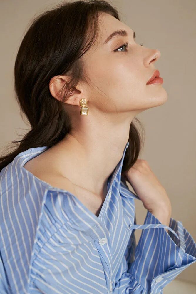 这款耳环设计也很法式,珍珠和施华洛世奇水晶镶嵌在金色金属里,有点Vintage Chanel的感觉~大小在耳朵上也是刚刚好的那种,适合日常上班上学戴!![]()