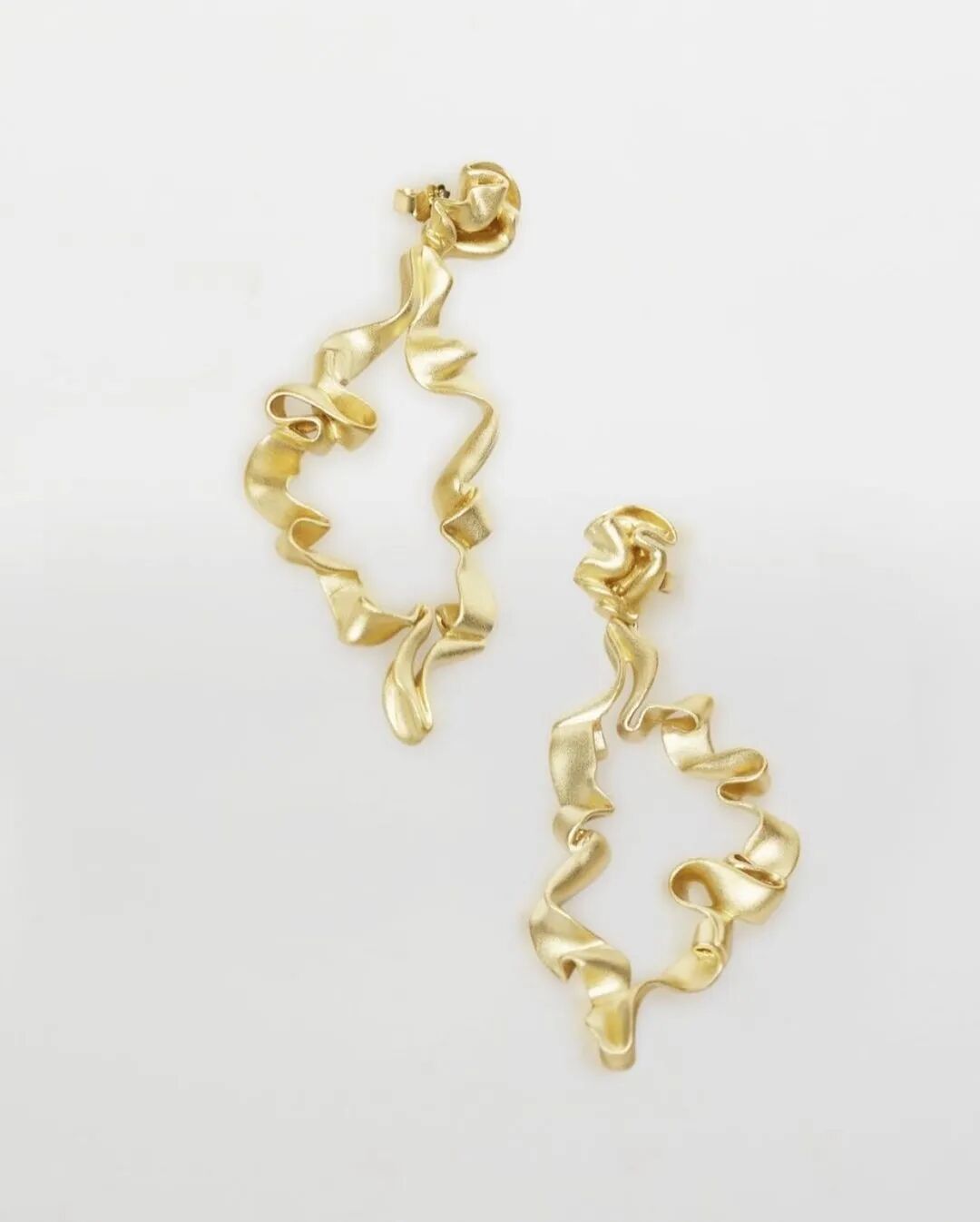 Cecilie Thorsmark戴过的这副金色耳环来自丹麦珠宝品牌TRINE TUXEN JEWELRY,这个牌子平时的设计也很“北欧”,大部分都是简约的款式。为数不多的尺寸偏大、设计感比较强的款式,都是素金或者素银的,而且金色占大多数。把金属做成各种有意思的形状,好像都会带点艺术感。丹麦造型师Trine Kjær也戴过TRINE TUXEN JEWELRY的一款金色耳环,设计灵感来源于蔬菜——羽衣甘蓝,还挺有意思的!![]()