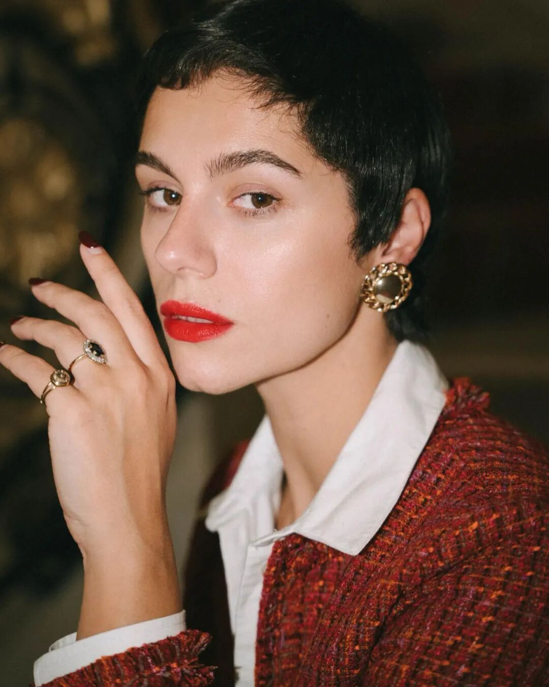 比如,大家熟悉的法国博主Leia Sfez,其实是个隐藏的戒指控。可能你对Leia Sfez的印象停留在她的法式刘海、经典中又带点Boylish的穿衣风格上。