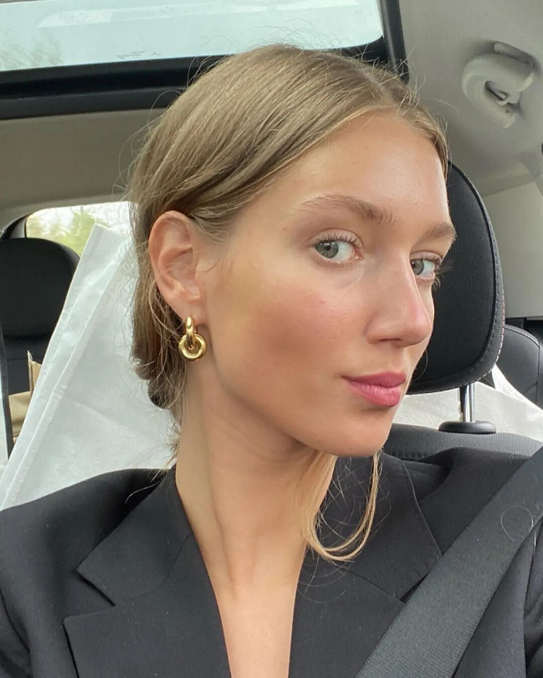 “一对耳环”的答案非常明显,也是大家的“老熟耳环”了。Cecilie Thorsmark最常戴的是一对最最简单的金色小耳圈。无论是去时装周看秀,还是和家人朋友聚会,都戴着它。![]()