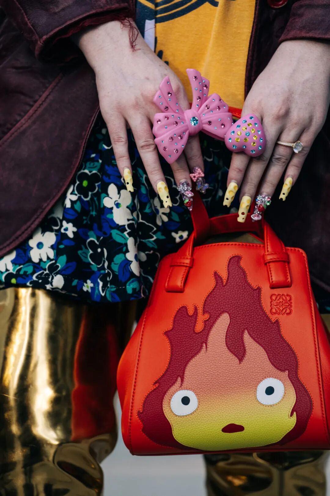 Loewe与吉卜力联名的包包好多人拎,而且搭配上都是怎么热闹怎来,繁复到极致,也和谐。
