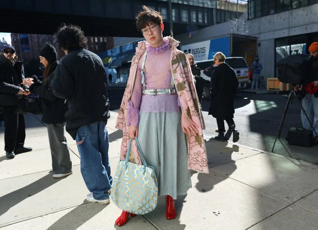 在纽约的秀场外,你还能看到仿佛是从唐人街瞬移过来的怀旧Look。