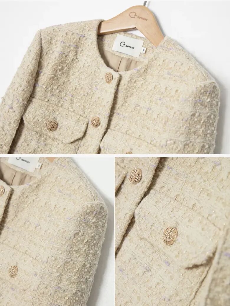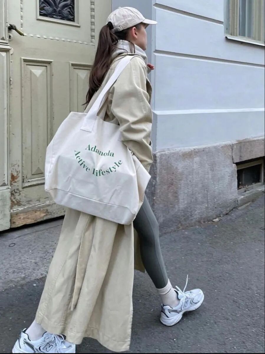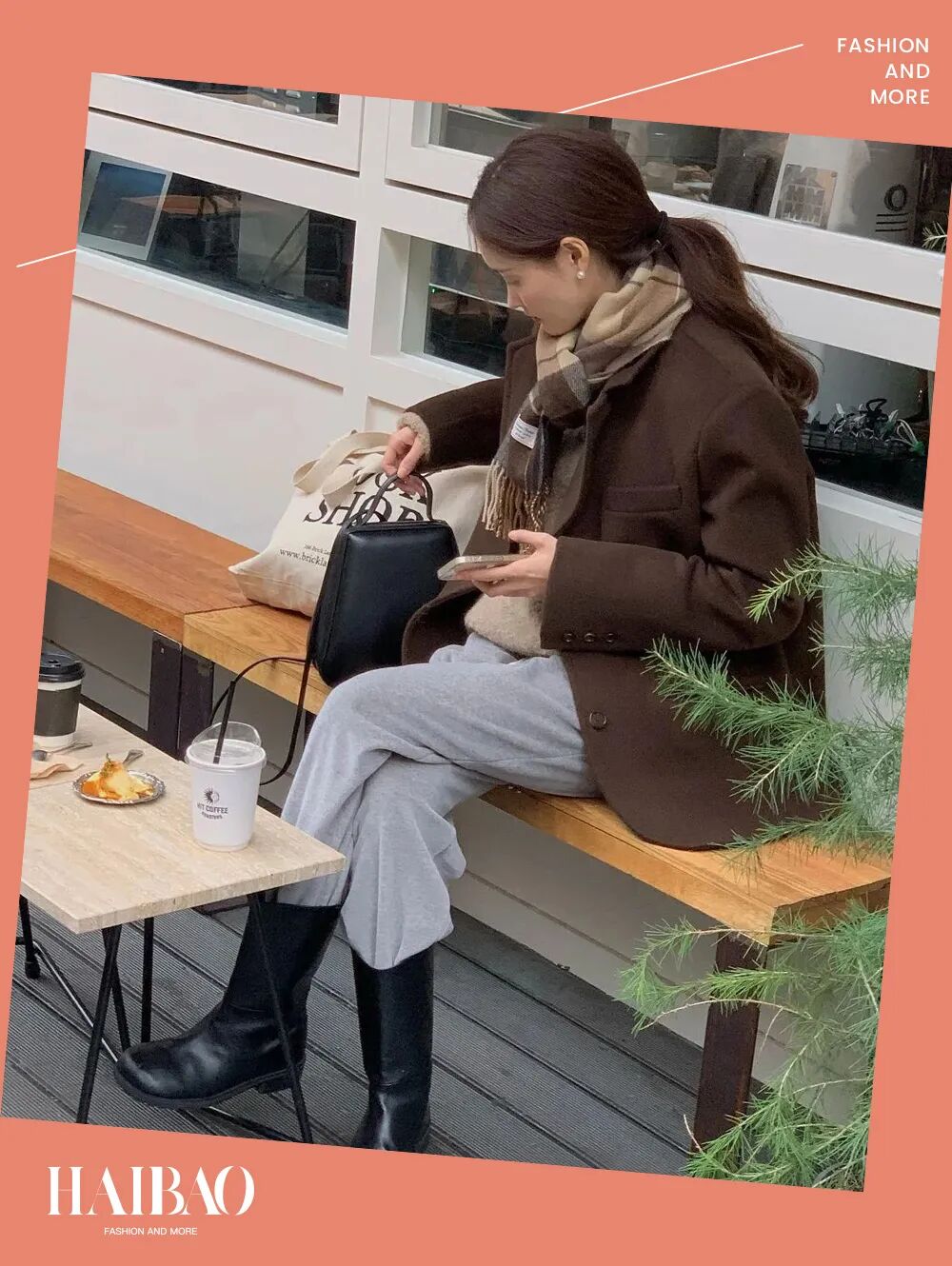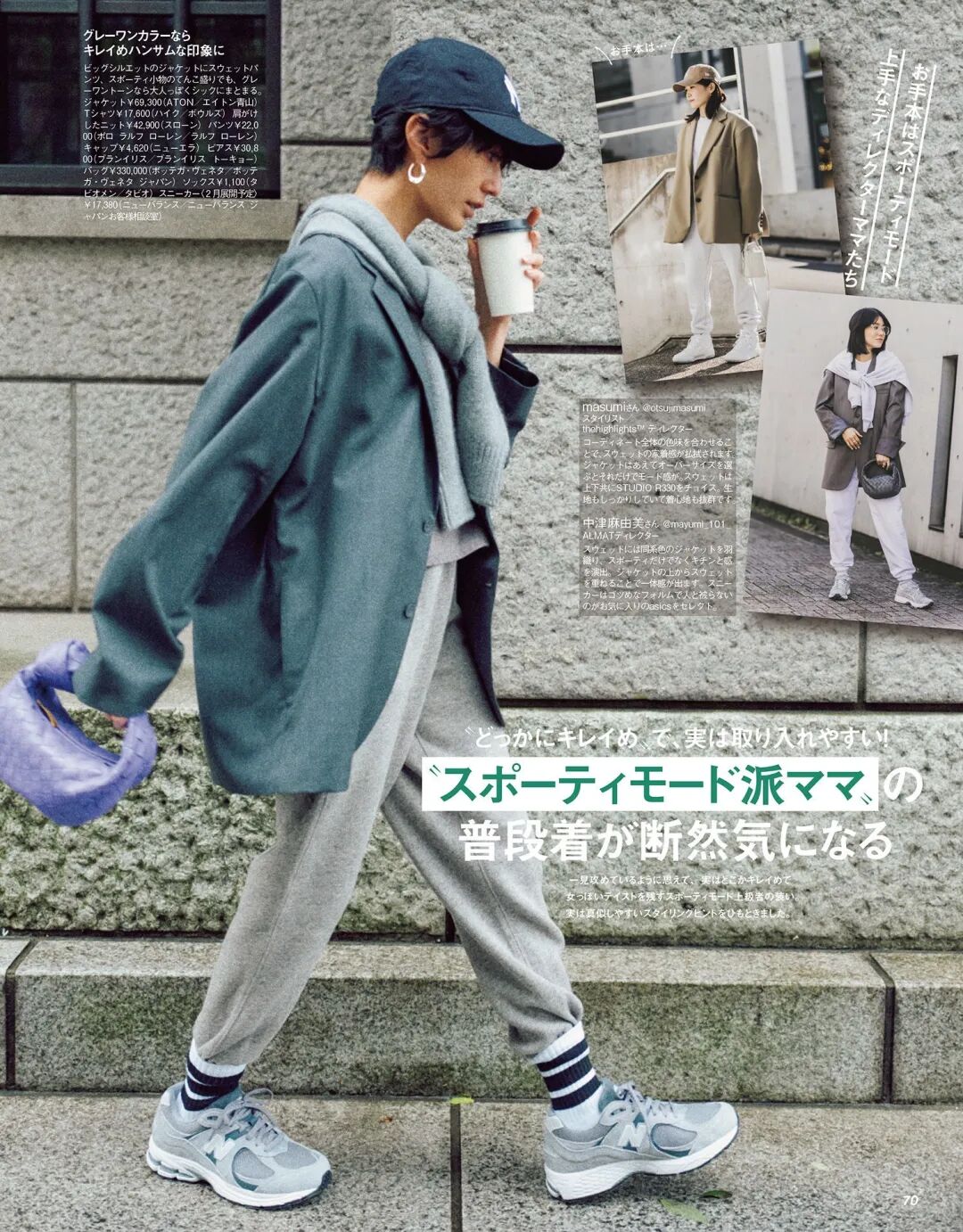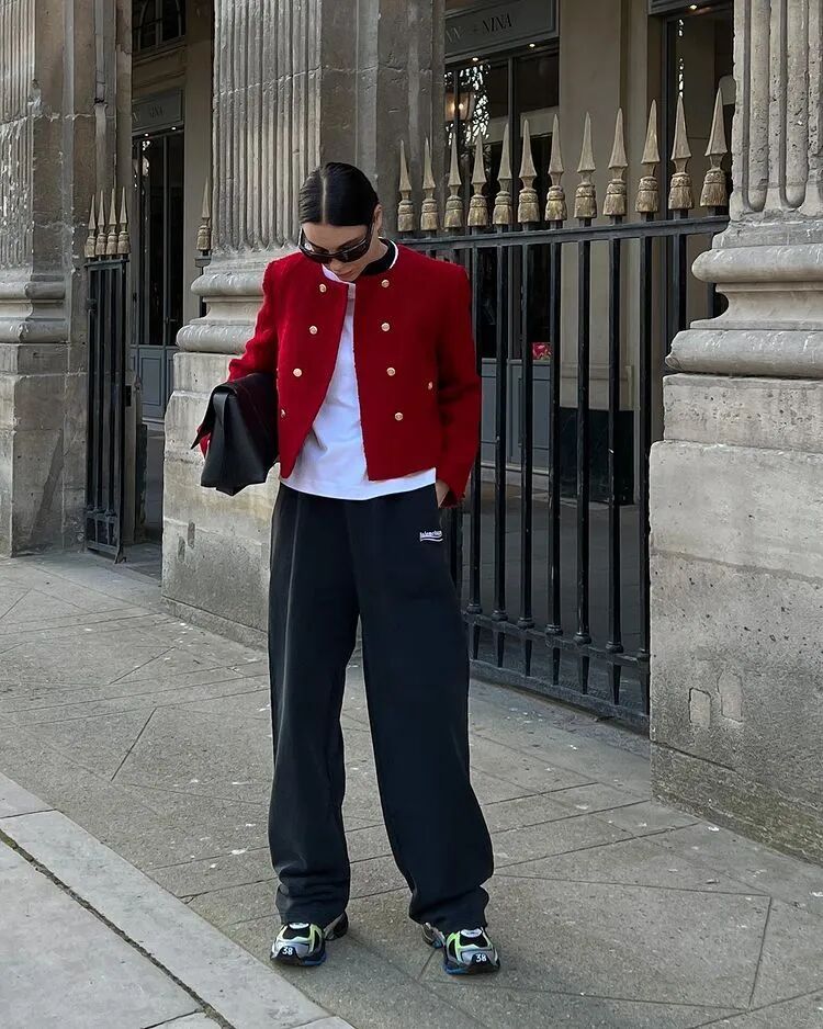 温柔的小香风外套和色彩柔和的运动裤碰撞,运动裤也能优雅起来。
