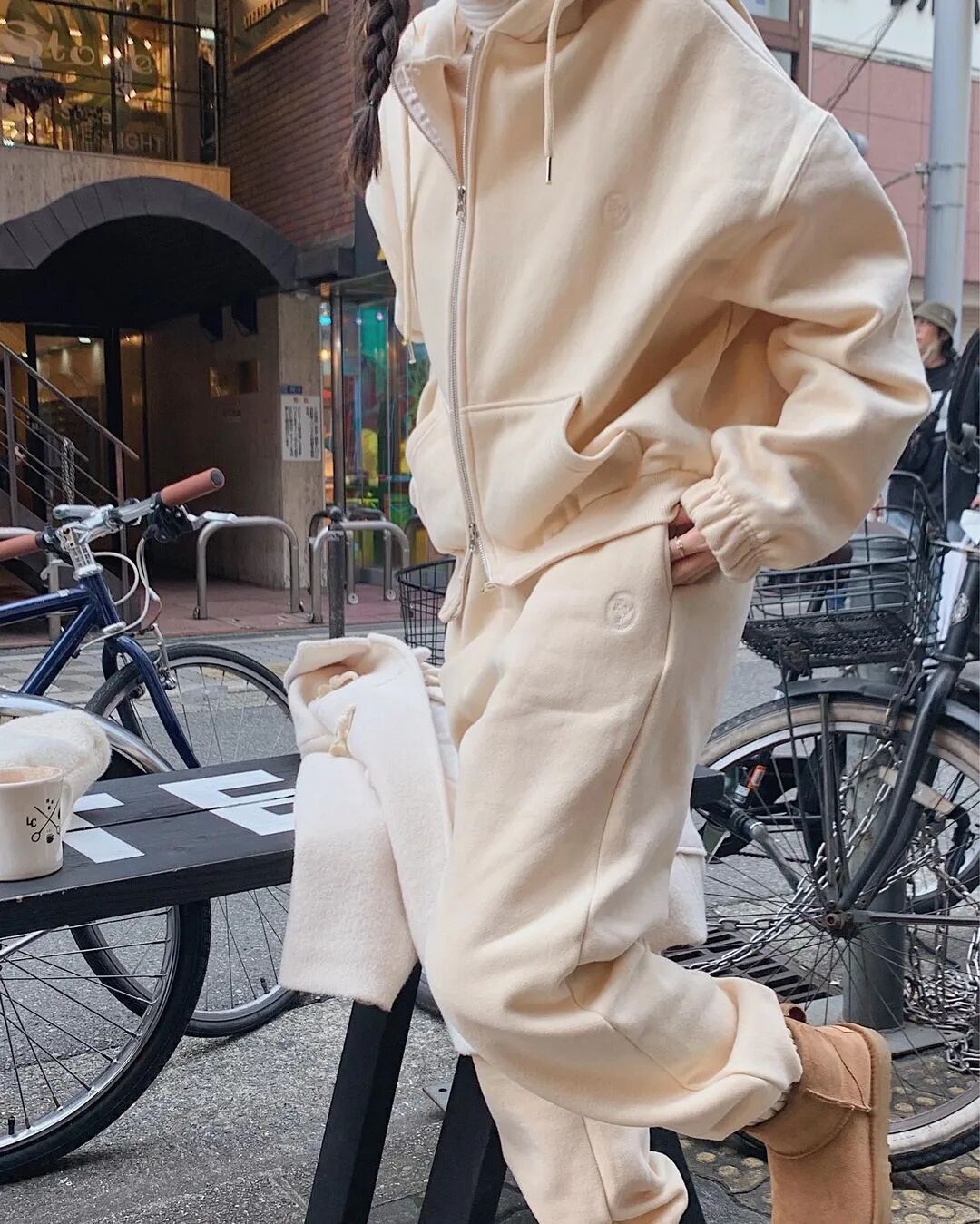 运动套装推荐Tracey - Rexing这种精巧版的,九分款的直筒运动裤,高腰的廓形卫衣,能突出运动套装的活力气息,拆开了单独穿也是蛮不错的单品。