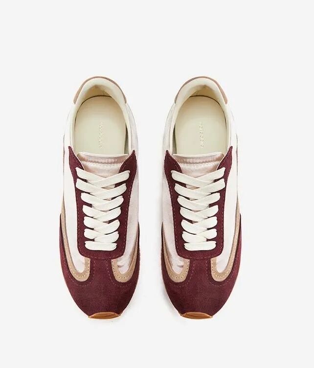 这双运动鞋是经典的阿甘鞋,但是特别的烟熏玫瑰色调,鞋面雾感和缎感的面料,让它看起来更有复古浪漫的调调,搭配运动裤会带点女性特质,穿出去不容易撞款。