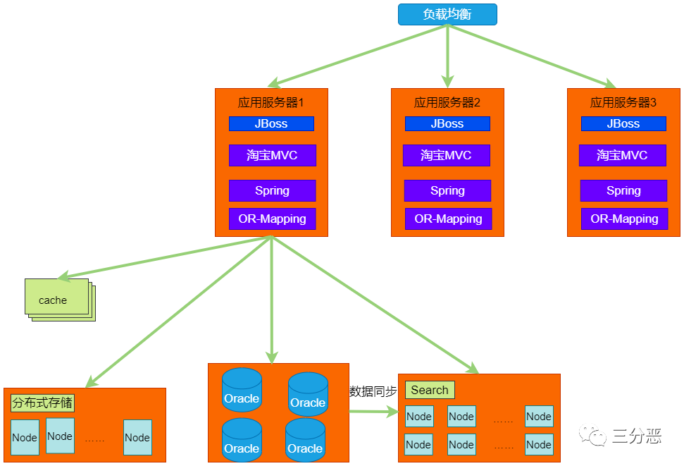 2、各层进行水平扩展:无状态水平扩容,有状态做分片路由。业务集群通常能设计成无状态的,而数据库和缓存往往是有状态的,因此需要设计分区键做好存储分片,当然也可以通过主从同步、读写分离的方案提升读性能。