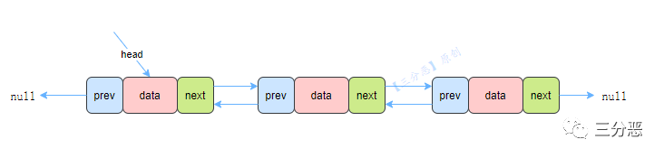 每个节点除了有指向下一个节点的引用,还有指向上一个节点的引用。