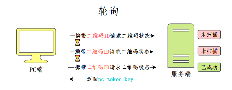 轮询方式是指客户端会每隔一段时间就主动给服务端发送一次二维码状态的查询请求。