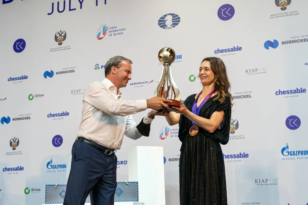 国际棋联主席德沃尔科维奇、俄罗斯国际象棋联合会执行董事格鲁霍夫斯基和索契市副市长弗拉基米尔莫洛佐夫等嘉宾出席了颁奖仪式,并为冠军科斯坚纽克(俄罗斯)、亚军戈尔亚奇金娜(俄罗斯)和季军谭中怡(中国)颁奖。