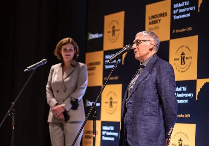 国际棋联主席德沃尔科维奇在致辞中告诉大家,他在儿时,有幸在塔林的一次比赛中见过塔尔本人。“那晚,我们的父辈在一起,而我和他女儿在下棋”。